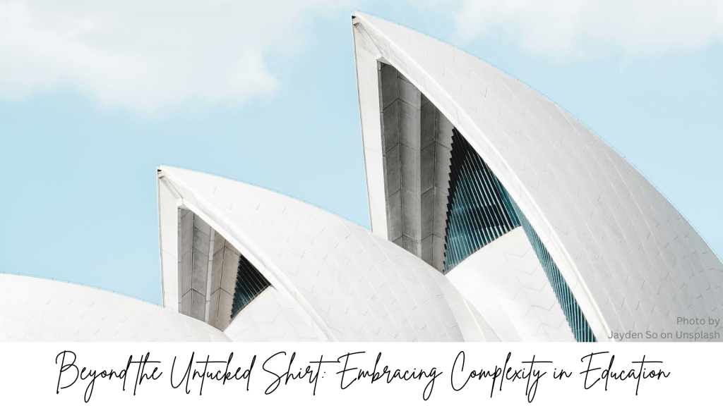 In schools, we are not just controlling simple behaviours; we are part of an intricate system of relationships, with each piece influencing the other. The stories we tell ourselves about what should or shouldn’t be happening shape the way we engage with the system. If we recognise that each of us is part of the story, rather than just a passive player, we might start to rethink how we engage with seemingly simple issues like untucked shirts. Maybe it’s time to shift the narrative – from controlling the small things to embracing the complexity of the whole system.